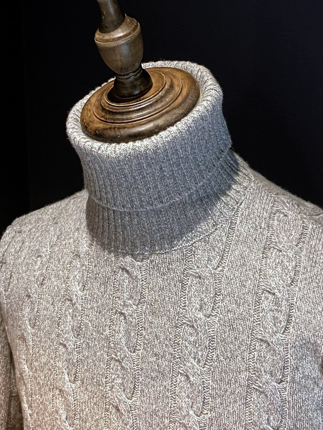 Maglione Dolcevita Treccia finezza 7 (2 fili) in filato 100% lana merino extrafine (lambswool)