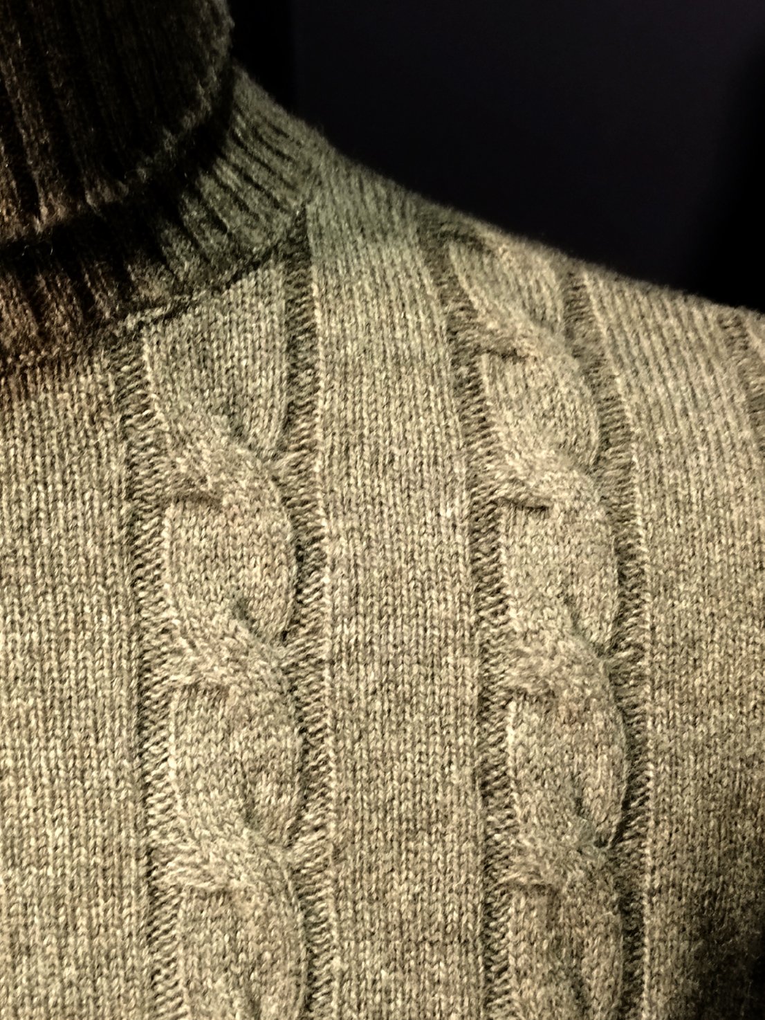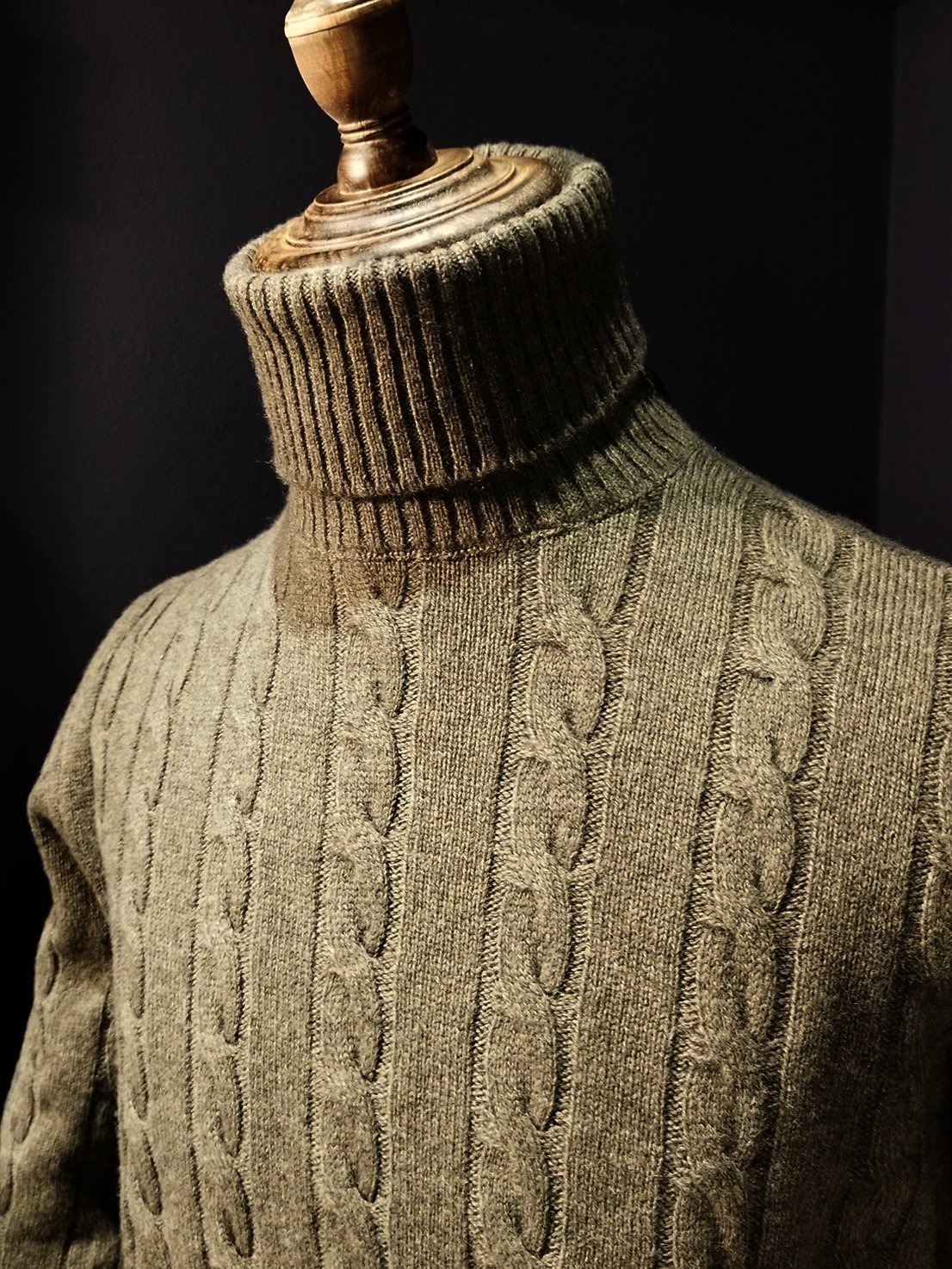 Maglione Dolcevita Treccia finezza 7 (2 fili) in filato 100% lana merino extrafine (lambswool)