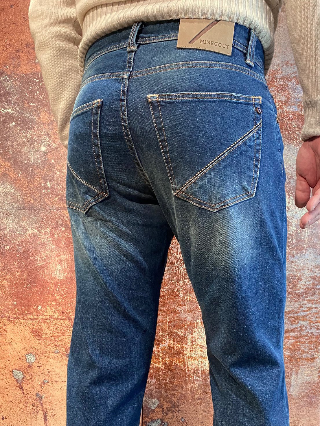 Jeans in denim con lavaggio medio chiaro e leggero effetto used